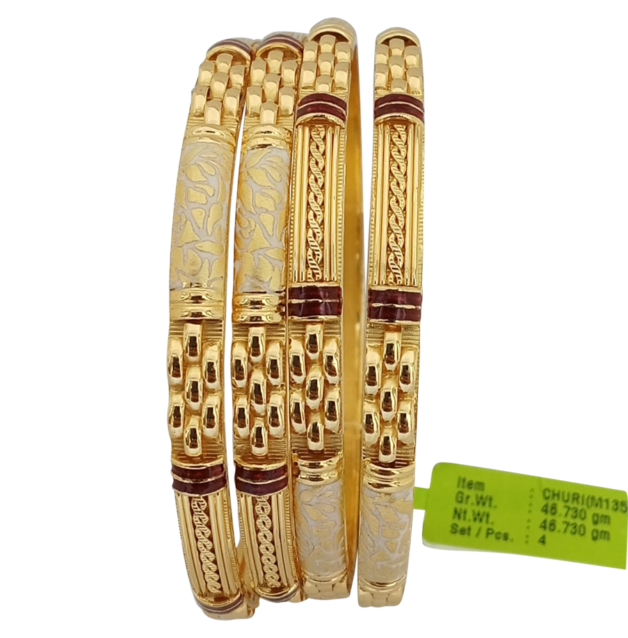 Our collection includes lightweight modern patterns as well as classic traditional styles, ensuring comfort and long-lasting shine. Whether worn alone or stacked together, these bangles instantly enhance your outfit and give a rich, royal appearance.
